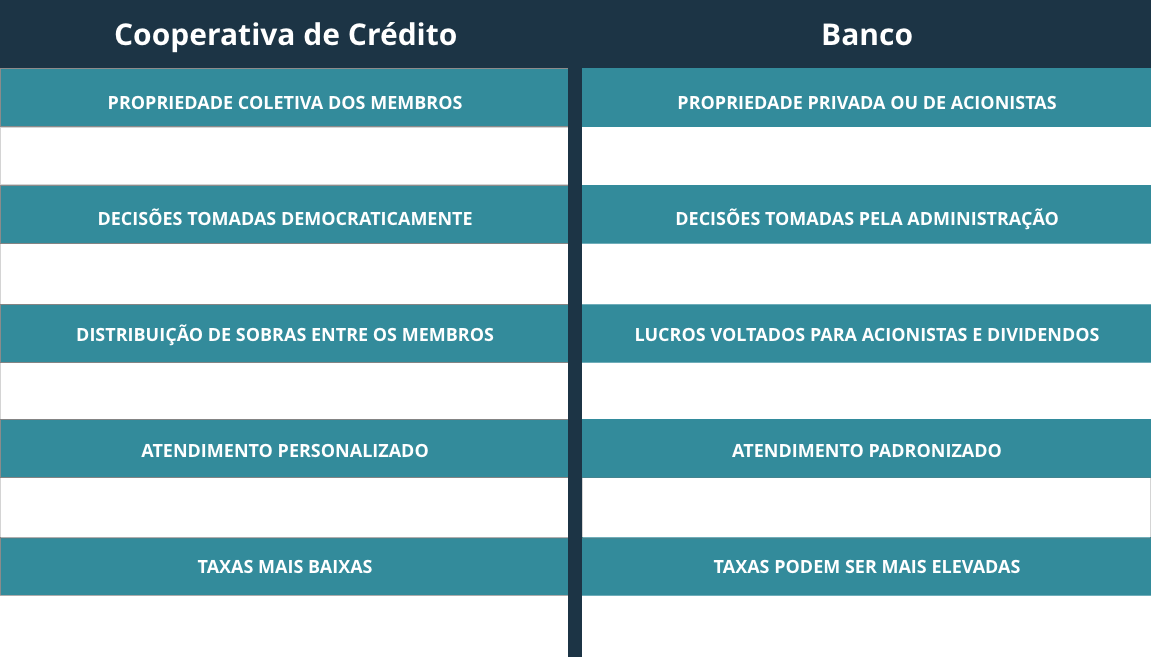 Diferente dos bancos comerciais, as cooperativas de crédito trabalham para o benefício dos membros, priorizando o atendimento às necessidades financeiras locais e oferecendo rentabilidade e segurança.